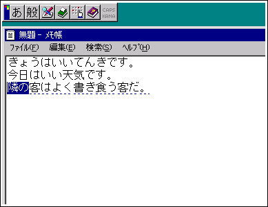 具体的には、「隣の客は良く柿食う客だ。」と入力することを考えてみます。