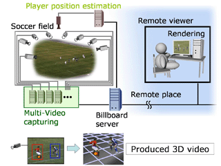 サッカーゲームのリアルタイム自由視点表示